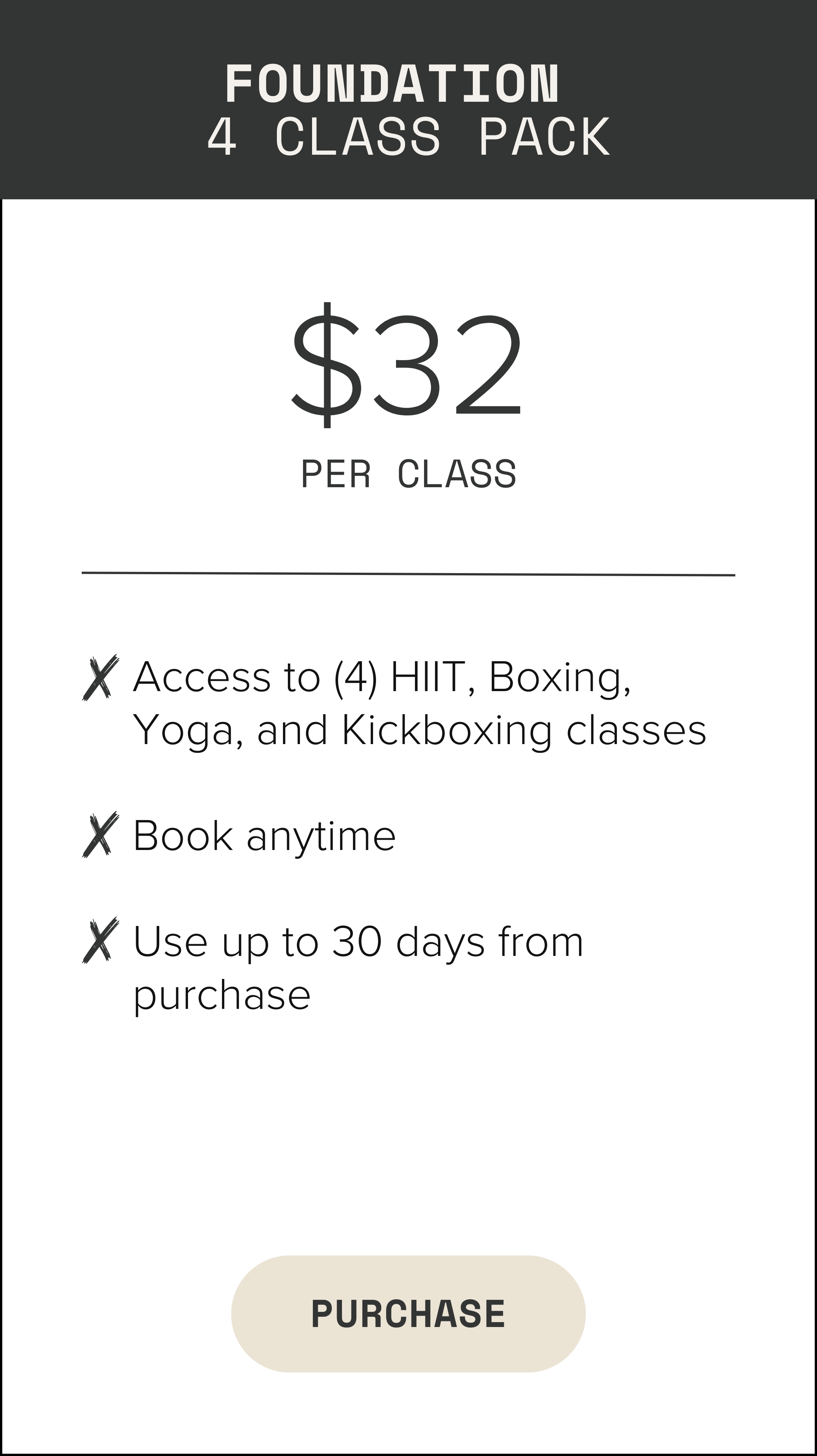 **All Month To Month Memberships: Passes expire at the end of the month; unused passes do not roll over. Taxes, registration, yearly fees may apply. The initial contract term is for a minimum of 60 days. After the initial 30 day period, cancellation requests must be submitted in writing and in person with a front desk staff member at least 30 days prior to your requested cancellation date. Refunds for mid-cycle cancellations will not be pro-rated.