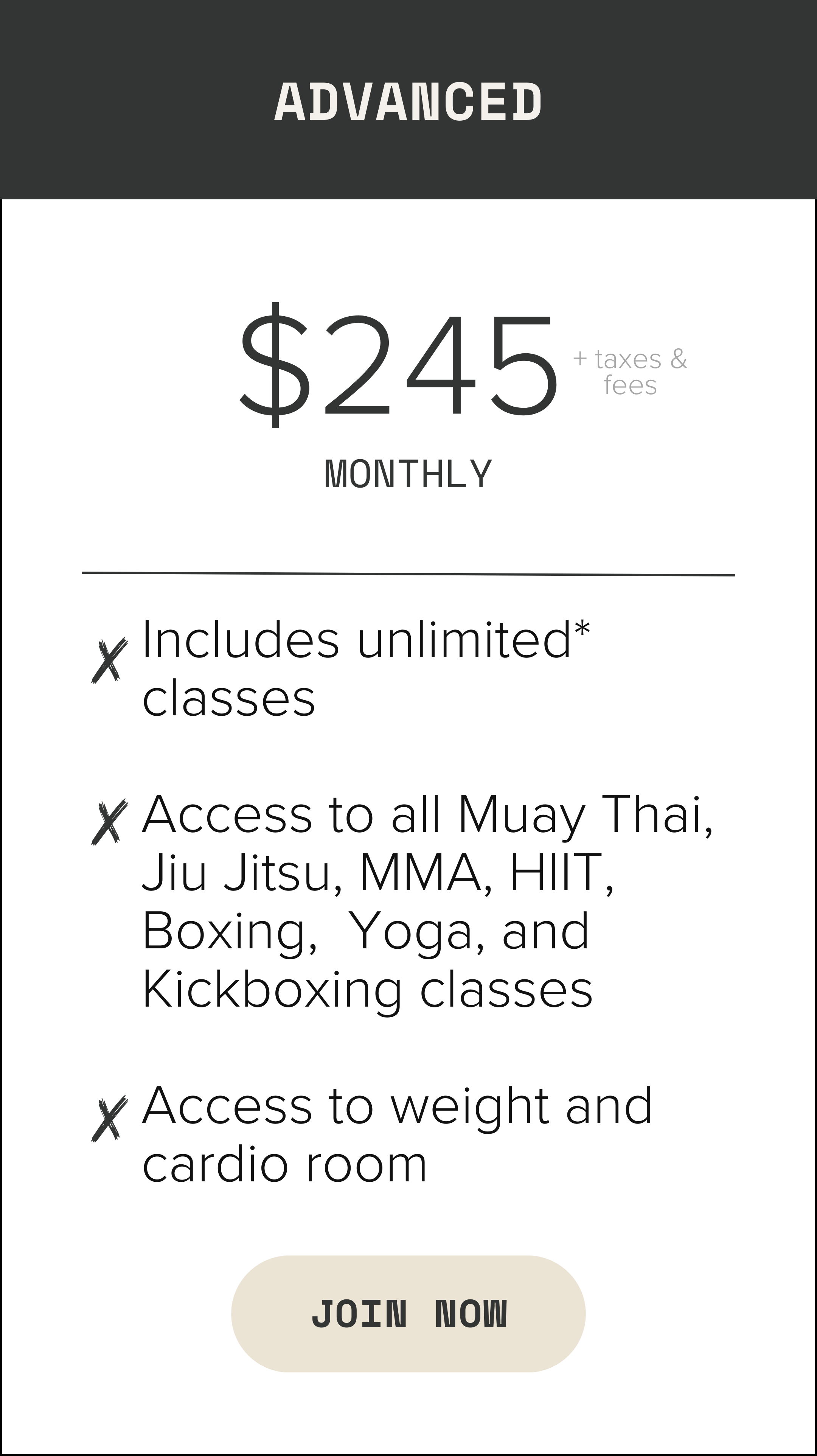 *Advanced Membership includes up to 1 class per day.